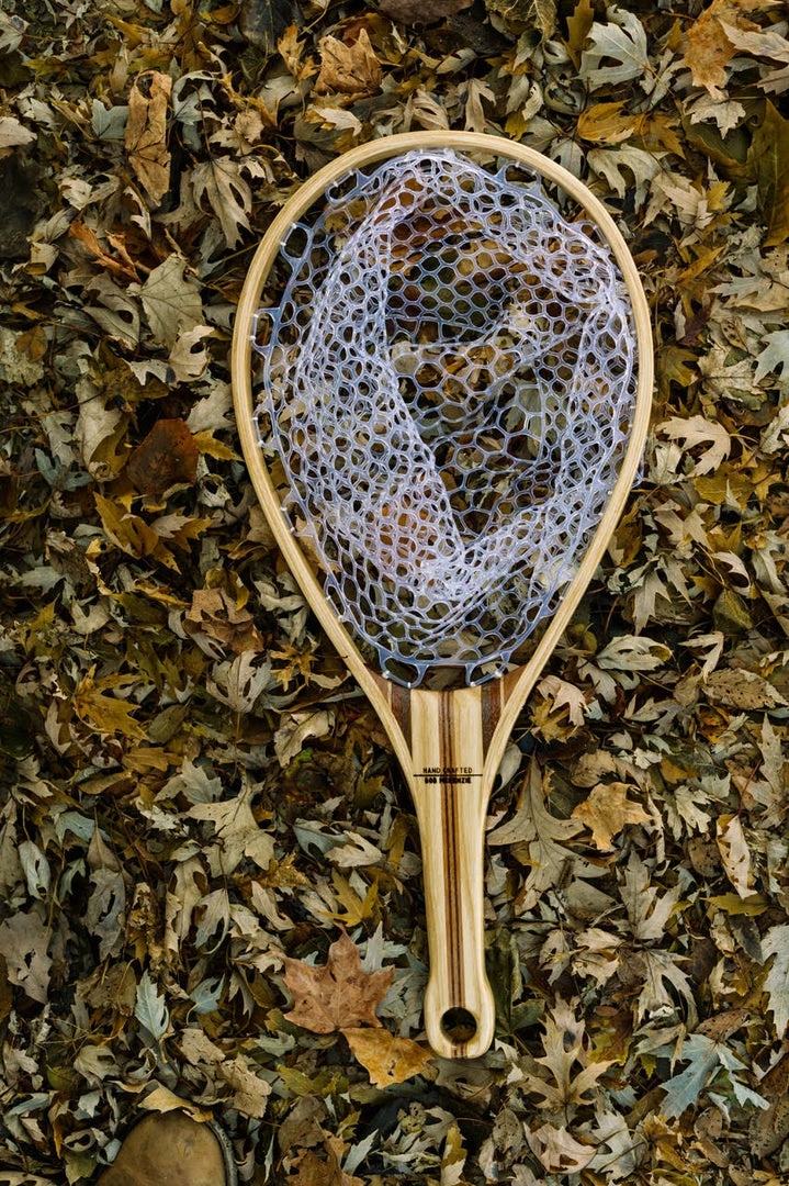 Local woodworker Bob Mckenzie makes these nets exclusively for Rod and Rivet.