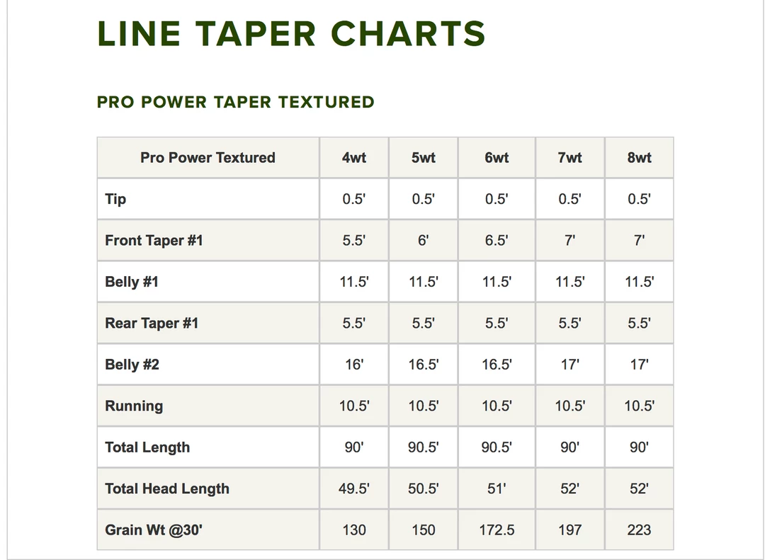 PRO Textured Power Taper Fly Lines offer increased surface area, allowing the line to sit higher in the water, offering less drag, easier mending, less water spray and easier pick-ups. The micro-textured surface traps air to provide increases in both shootability and floatation while decreasing friction. PRO Power Taper is designed for loading faster action rods at a half-size heavier than industry standard grain weight. The advanced compound taper design allows for easier turn-over of heavier rigs, including larger dries, dry-dropper rigs, nymphs, and streamers. The Power Taper will load a rod deeper and quicker than a traditionally weighted line, helping to enhance “feel” and improve timing during the cast. The 50′ head adds length for better line control and loop stability and the longer head excels at on-water maintenance for mending on longer drifts. 4 wt-8 wt.