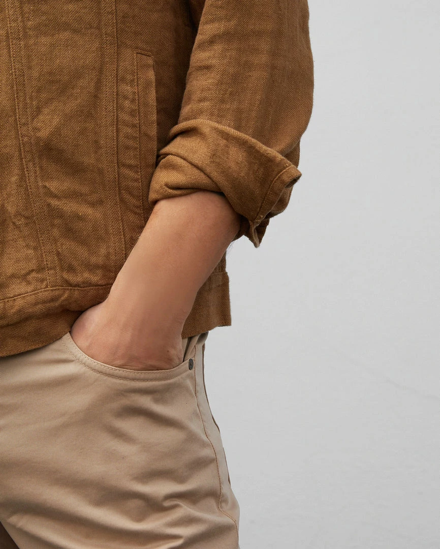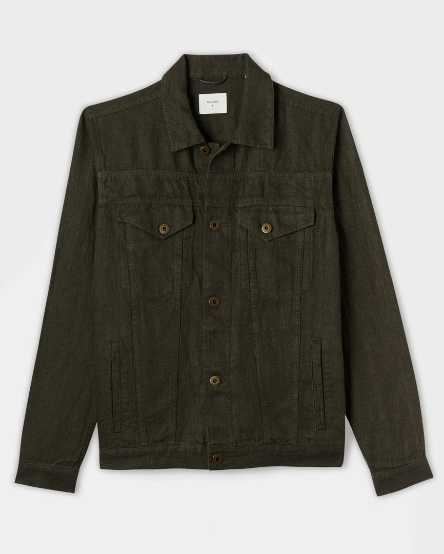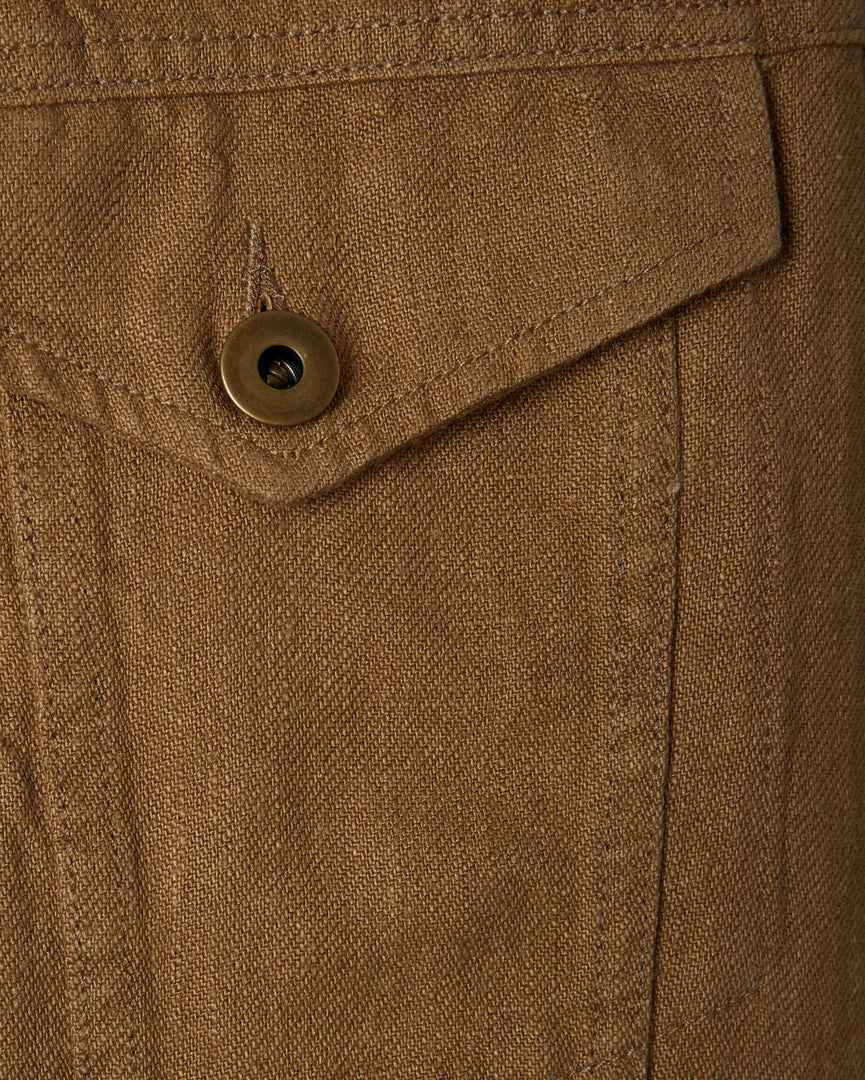 100% linen for an unexpectedly lightweight feel. Finished with antique brass buttons throughout, with those at the cuff branded with our signature ribbon stripe. An essential layer for this season and beyond.