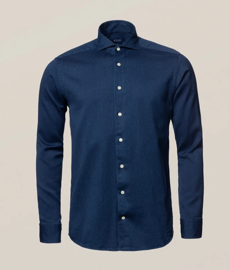 This meeting of satin and indigo yields sleek texture and outstanding softness. The fine, herringbone-textured satin weave adds a hint of luster, which makes this shirt slightly more dressed than its denim counterparts. Garment-washed for added tactility and softness, it is a modern, versatile choice for casual and business casual looks. Team it with contemporary tailoring or fine knitwear.