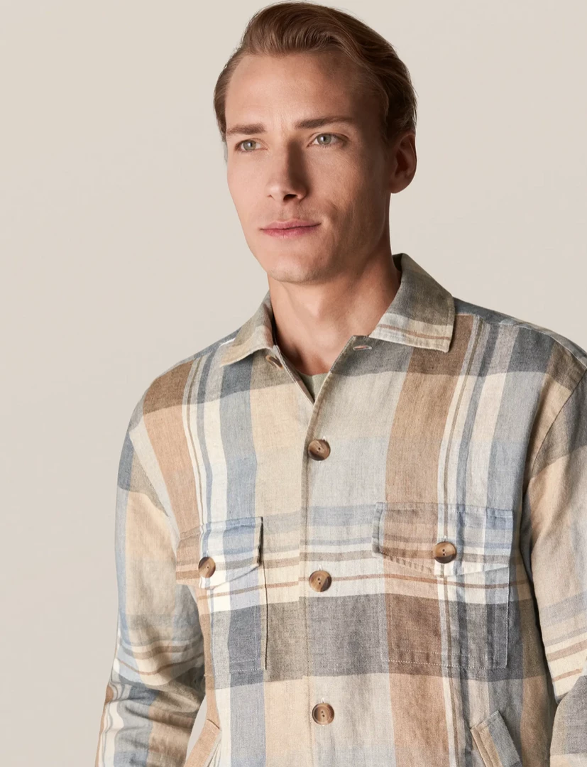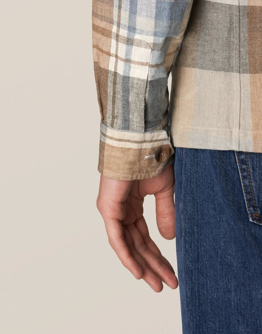 A rich linen twill overshirt, inspired by classic suiting. This luxurious shirt-jacket is a complete substitute for an unlined jacket, with a straight fit that allows for a relaxed, smart shirt-and-overshirt look.