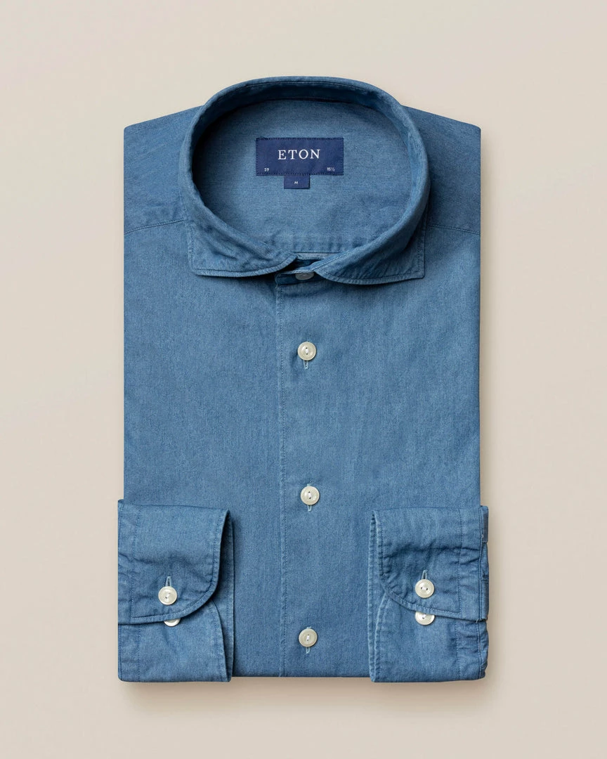 Casual and refined in equal measure, this shirt is a go-to for a modern man. Made from a lightweight indigo fabric that fades slightly after wearing, creating a personal look that gets only nicer with age. Perfectly soft, it will fit any laidback or business casual outfit. Make sure you wash your denim shirts separately to prevent the indigo bleeding onto other garments.