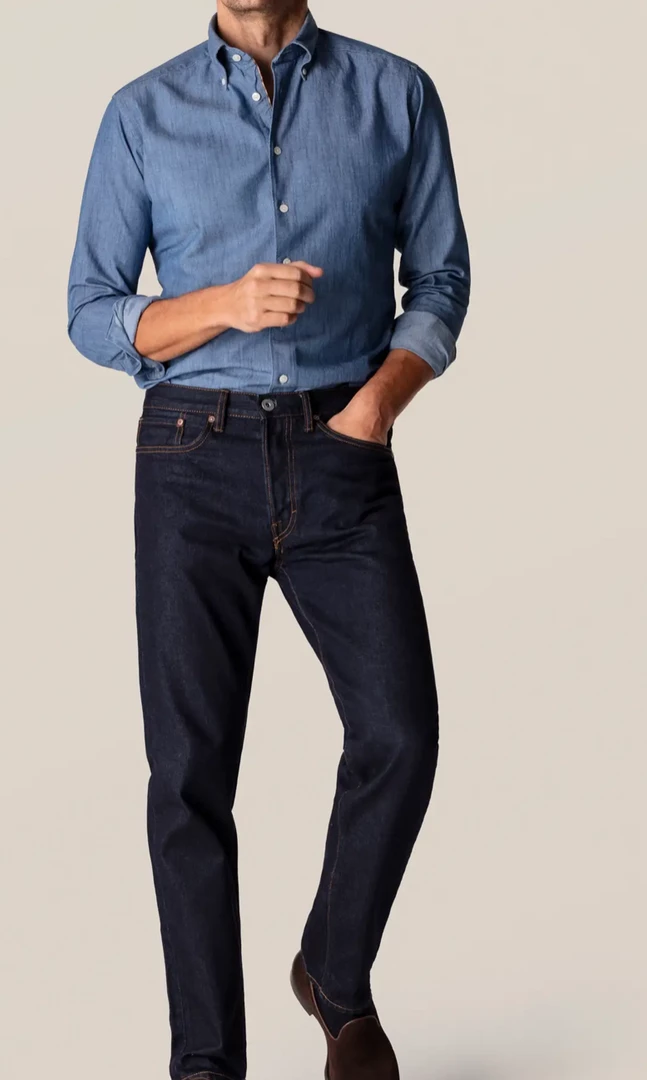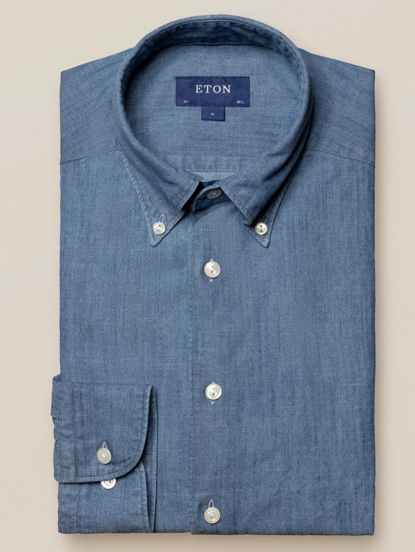 Our popular denim shirt makes a smart comeback with updated details. Cut from Italian-woven denim twill, the shirt is garment-washed for a rich mélange effect that becomes beautifully pronounced with wear. A versatile, timeless shirt suitable for any business casual or casual look. Brown button stitching and piping detail the style.