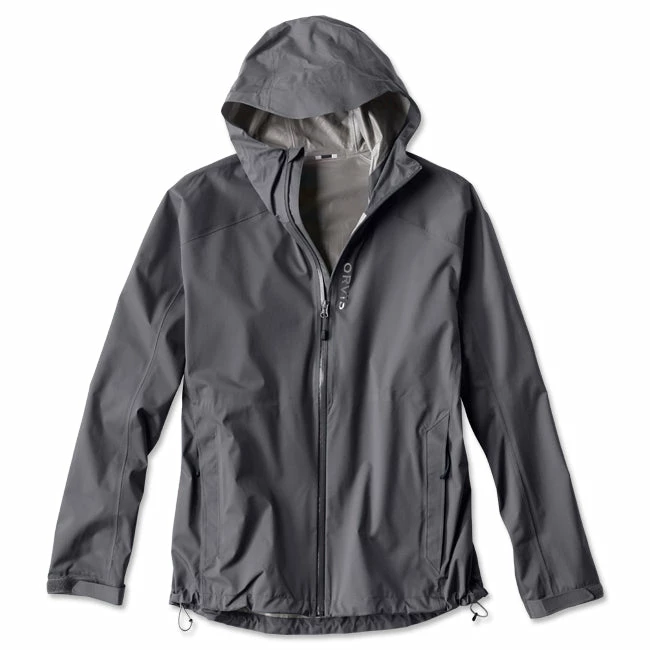 This ultralight waterproof storm jacket packs into your daypack or carry-on for anything from a sudden downpour to a constant drizzle. Inspired by our Ultralight Wading Jacket, it features a stretch 2.5 layer waterproof breathable nylon shell with raised dry-touch coating interior that increases comfort and air flow. YKK AquaGuard® water-resistant zipper, adjustable storm hood with laminated brim, cuffs with hook-and-loop closures, and a hem with dual cinches all combine to seal out the elements. Zippered pockets for essentials, and it rolls and packs into its own hood so it’s there when you need it, but stows away when you don’t. Modern Fit. 10.4 oz. in medium. Washable. Imported.