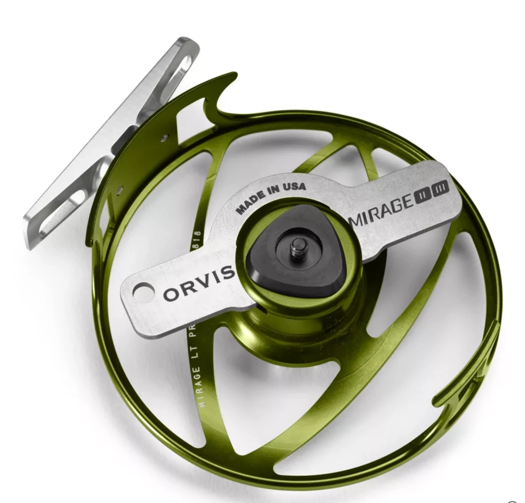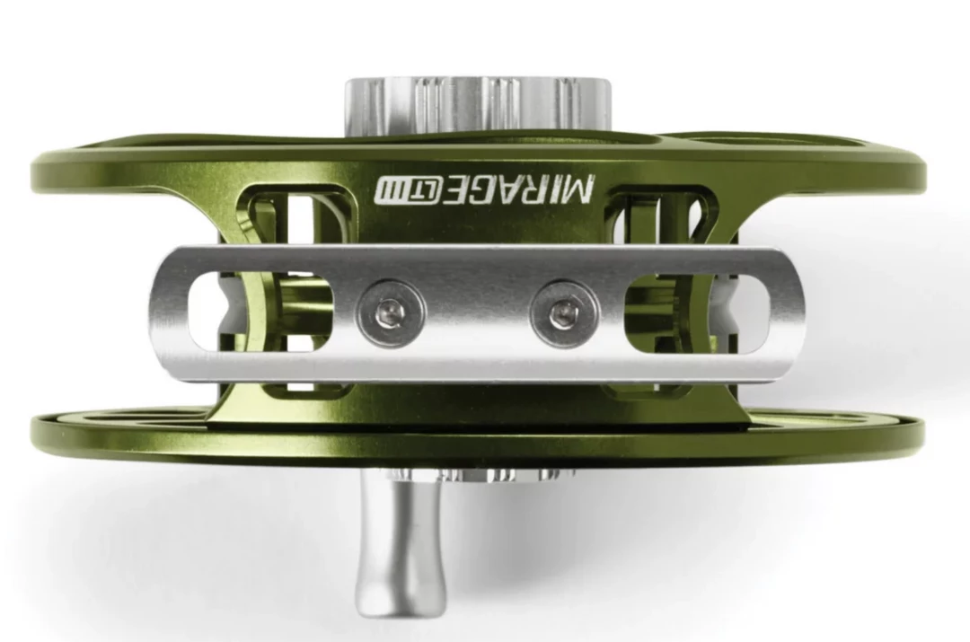 There are times when less is more—the new Mirage LT fly reel is everything its big brother is, but designed to balance perfectly with lighter rods and yet still offer legendary Mirage engineering and performance. Mirage LT features a lighter version of the sealed and maintenance-free carbon and stainless steel disc drag system that adjusts from zero to full drag in a single drag knob rotation. With zero start-up inertia and precise low-end control it eliminates line shock and protects light tippets with the same silky smooth drag, and yet offers more stopping power than you will ever need for trout, bass, pike, musky, or carp. 30% lighter and 30% narrower, the Mirage LT is made in New Hampshire by the same skilled American craftsmen that build the Mirage. The LT offers the same increased retrieve rates, reduction in line coil, and is machined from the same strong, yet lightweight, 6061 T6 aluminum barstock as the Mirage. Ergonomically designed, machined aluminum handle. Quick-release spool easily converts from left- to right-hand retrieve. Type II anodizing. Titanium shaft reduces weight and adds durable power transmission. Fully radiused reel foot prevents kinked leaders. Low-profile counterweight won’t catch fingers or fly lines. In midnight with silver accents, olive with silver accents, and red/white/blue.
