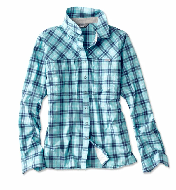 In the Women’s PRO Stretch fishing shirt, you’ll find a lightweight technical option designed to protect from sun and heat, but also to bend and give with your every move. Built-in stretch and underarm gussets for unrestricted movement, with UPF 30 for maximum sun protection. Polygiene® odor control for extended wear on long days on the flats. Avra® fabric collar cools the neck with maximum wicking and evaporative cooling. Two zippered chest pockets for accessories and gear, with an integrated cord for tool docking. Orvis sunglasses and cell phone cleaner built in. Athletic Fit. Nylon/spandex. Washable. Imported.