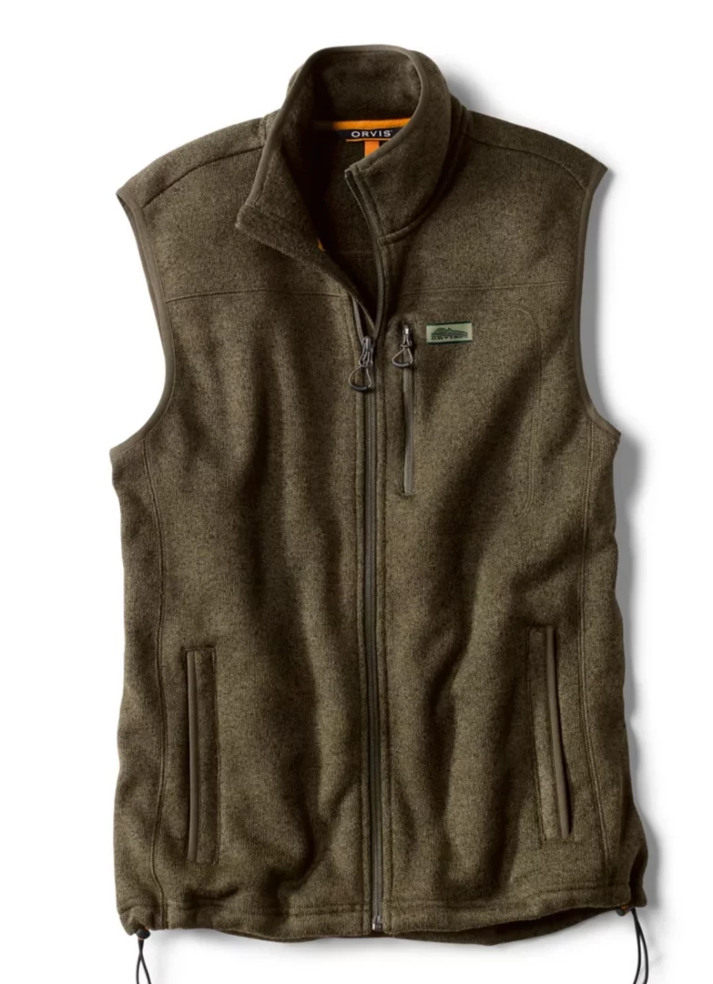 lightweight fleece vest, with soft-brushed fleece interior and sweater-knit exterior, expertly blends technical properties with sweater style. Sustainably made of recycled polyester from PET bottles in a bluesign®-certified factory, this comfortable, durable fleece won’t pill or weigh you down. Three zippered pockets provide secure storage for small essentials. Shaped hem with draw cord. Zip front. Active fit.