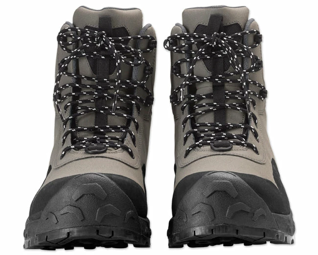 The men’s Clearwater rubber sole wading boot is built with a full synthetic leather upper that provides comfort and durability without excessive seams. The boot is protected by a scratch rubber toe, vamp, and heel counter for added durability, and a heavy-duty rubber toe bumper protects the foot in tough wading conditions. An integrated EVA foam footbed offers all-day comfort and a wider fit. A phylon midsole and ESS plate provide stability, and excellent stud retention. The rubber outsole option has an aggressive lug design and strategic stud locations for enhanced grip. A complete upgrade of the best value-priced wading boot on the market. In gravel. Men’s whole sizes 7-15. Synthetic leather upper. Imported.